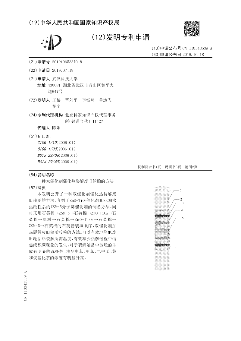 本发明公开了一种双催化剂催化热裂解废旧轮胎的方法,介绍了ZnO‑TiO