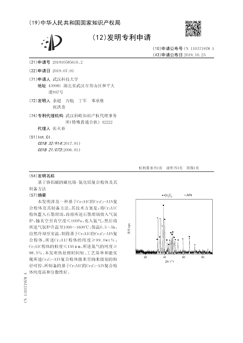 AlC粉体的粒度≤150μm。所述氮气的纯度≥98.5%。本发明热处理时间短、工艺简单和能实现所述Cr