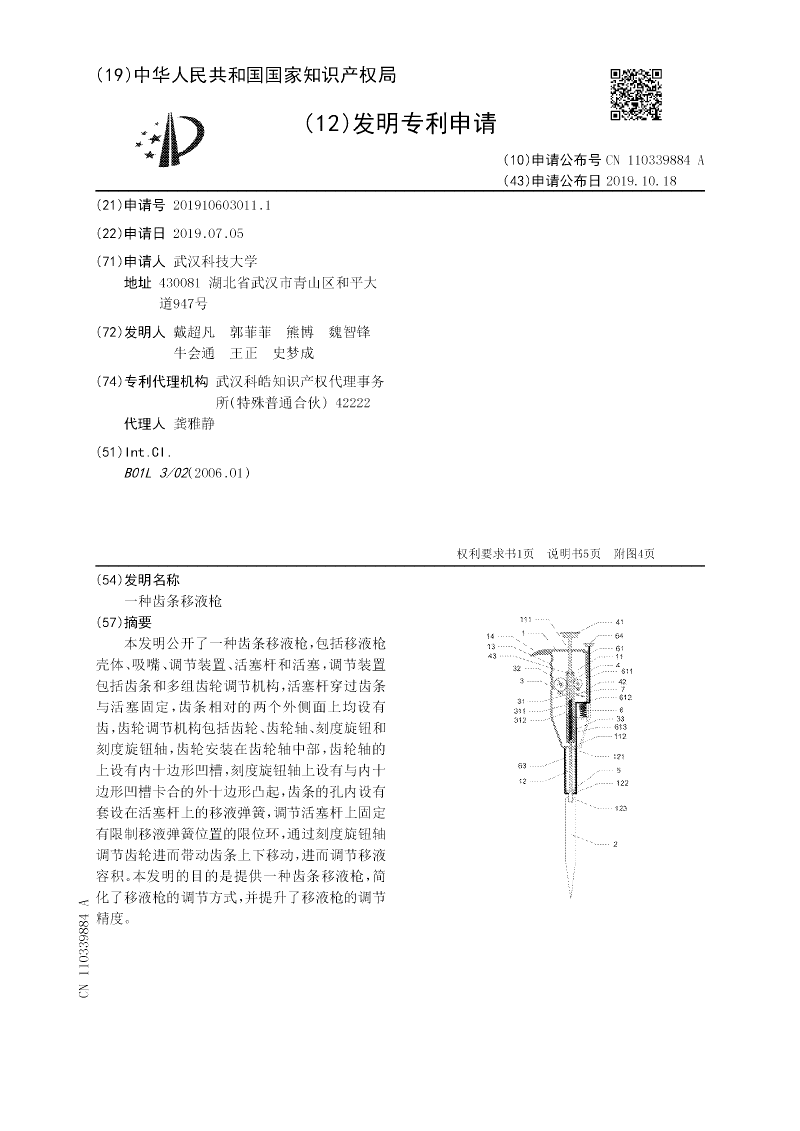 一种齿条移液枪