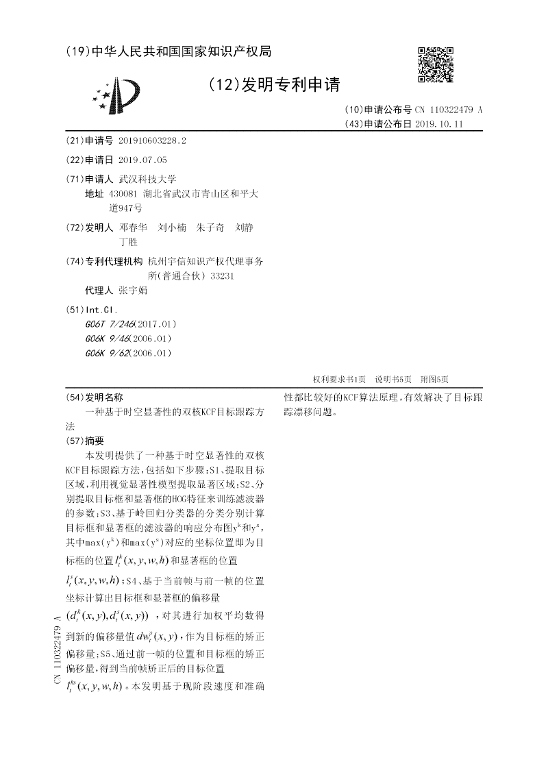 一种基于时空显著性的双核KCF目标跟踪方法