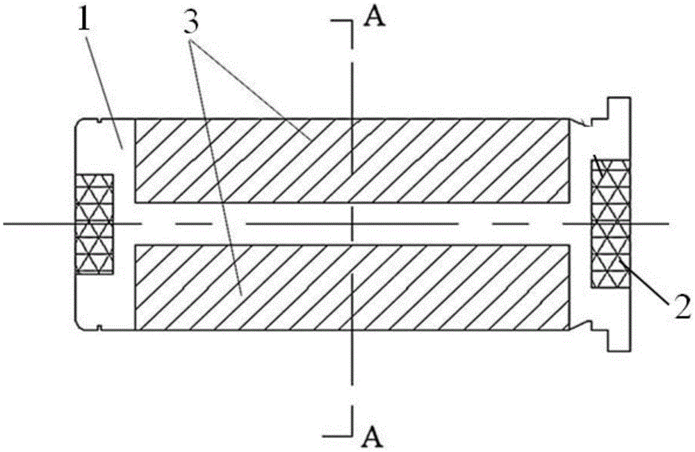 一种组合式高速电磁阀铁芯,包括柱状本体及位于柱状本体两端的密封装置,其特征在于:所述柱状本体的侧面上设置数量不少于两个的凹槽,所述凹槽内插有以过盈配合的方式压入柱状本体的凹槽中的插片,插片表面涂有绝缘漆;在保留铁芯原有造型的基础上,采用硅钢片局部代替软磁不锈钢,保证了铁芯满足使用条件的高饱和磁感应强度及轴向刚度;采用了表面涂有绝缘漆的硅钢片,隔断了感应电流回路,铁芯的高频涡流损耗得以大幅降低,铁芯发热减少,电磁阀工作也将更加稳定可靠。