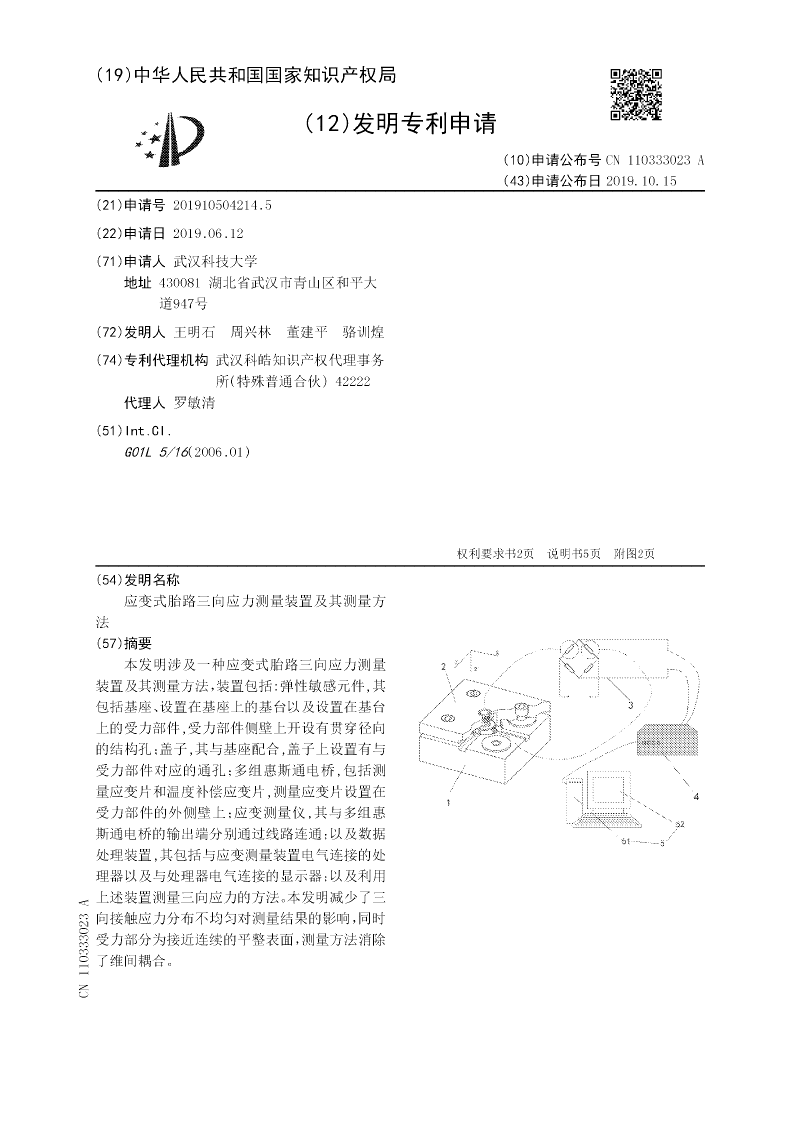 应变式胎路三向应力测量装置及其测量方法