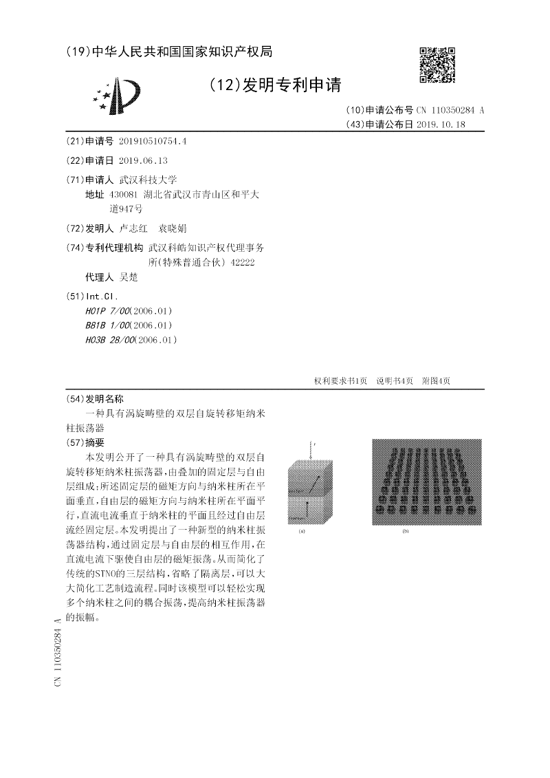一种具有涡旋畴壁的双层自旋转移矩纳米柱振荡器