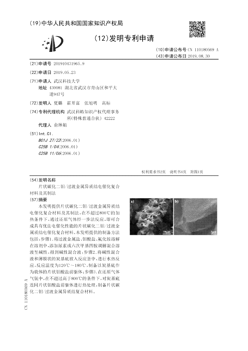 片状碳化二钼/过渡金属异质结电催化复合材料及其制法