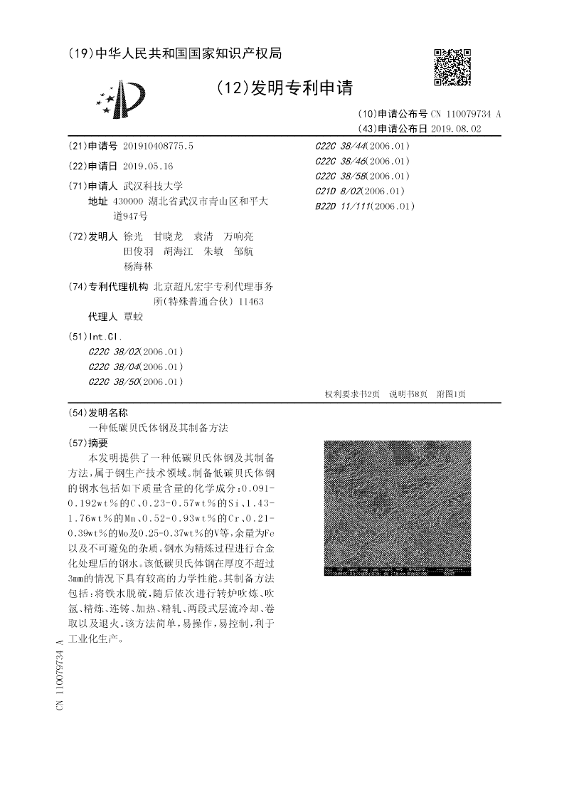 一种低碳贝氏体钢及其制备方法