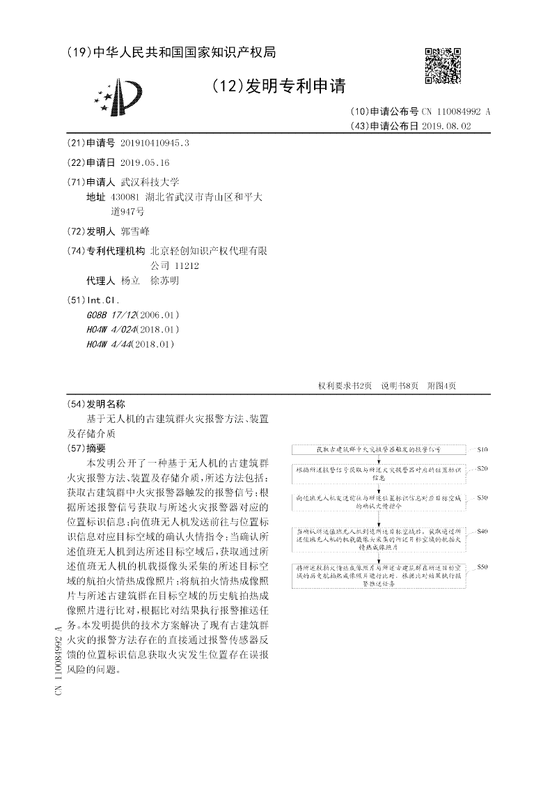 基于无人机的古建筑群火灾报警方法、装置及存储介质