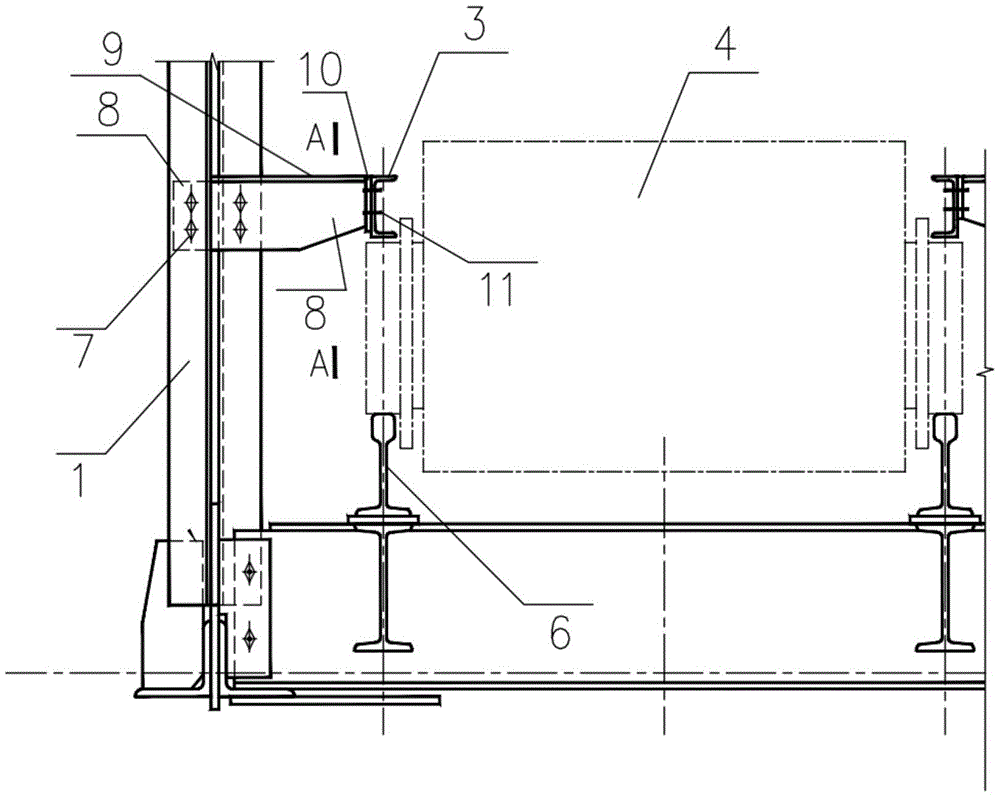 本公开涉及锅炉上煤装置,包括上煤机(4),上煤桥(1),和安装于上煤桥上(1)相互平行的轨道(6)和限位梁,上煤机(4)一侧的车轮置于限位梁的凹槽内,上煤机(4)另一侧的车轮置于轨道(6)上,限位梁包括第一限位梁(2)和通过连接组件可拆卸地安装于上煤桥(1)检修位处的第二限位梁(3),所述连接组件包括加劲板(8)、第一连接板(9)和第二连接板(10),加劲板(8)通过螺栓(7)紧固在上煤桥(1)上,第一连接板(9)和第二连接板(10)连接成T形构件,第一连接板(9)垂直固接在加劲板(8)上,第二限位梁(3)通过螺栓(11)紧固在第二连接板(10)上。实现了检修上煤机时快速无损地拆装限位梁的目的。