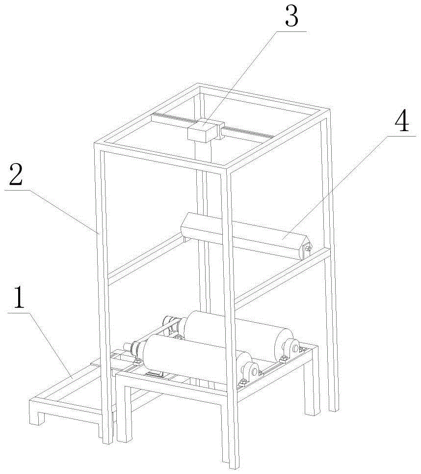 本实用新型设计一种基于机器视觉的钢管表面图像采集设备,所述采集设备包括驱动系统、机架、图像采集系统、光源系统;所述驱动系统位于机架的下方,且能够相对于机架往复移动,图像采集系统固定于机架的上方,光源系统固定于机架的中部。使用时,将待获取表面图像的钢管放置于第一驱动辊和第二驱动辊之间上方位置,启动电机,带动第一驱动辊和第二驱动辊缓慢加速旋转至匀速,此时钢管在两者之间匀速旋转,然后转动镜头对焦环实现对焦,根据线阵相机的扫描帧率调整钢管旋转的速度使其成像清晰;当钢管旋转一圈即可获得整个表面图像,图像采集完成后,关闭电机,一次图像采集试验结束。