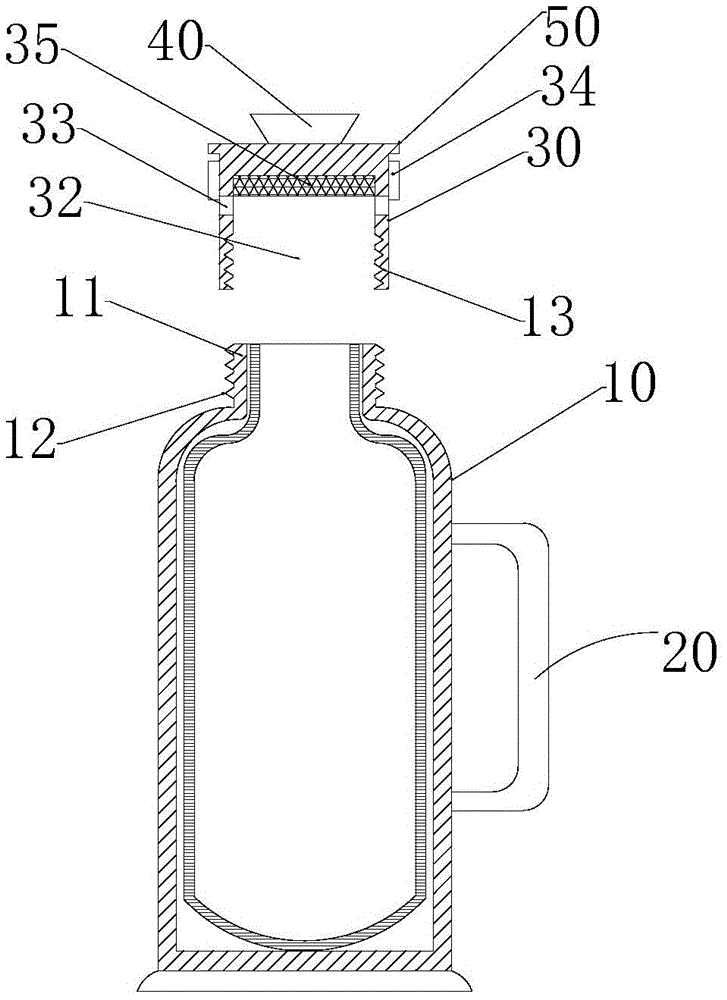 本实用新型公开了一种热水瓶,包括热水瓶本体和瓶塞,所述热水瓶本体具有圆柱形的外壳,所述外壳竖直设置,其上端同轴设有圆筒形的连接部,所述连接部的下端开口与所述热水瓶本体的内部连通,所述瓶塞可拆卸的设置在所述连接部的上端开口处,所述瓶塞为圆柱形,其竖直设置,且其下端同轴开有与所述所连接部对应的凹槽,所述连接部可拆卸的设置在所述凹槽内,以通过所述瓶塞封闭所述连接部的上端开口,所述瓶塞的侧壁上沿周向间隔设有多个与所述凹槽连通的第一通孔。本实用新型的热水瓶具有结构简单和安全性能高等优点。