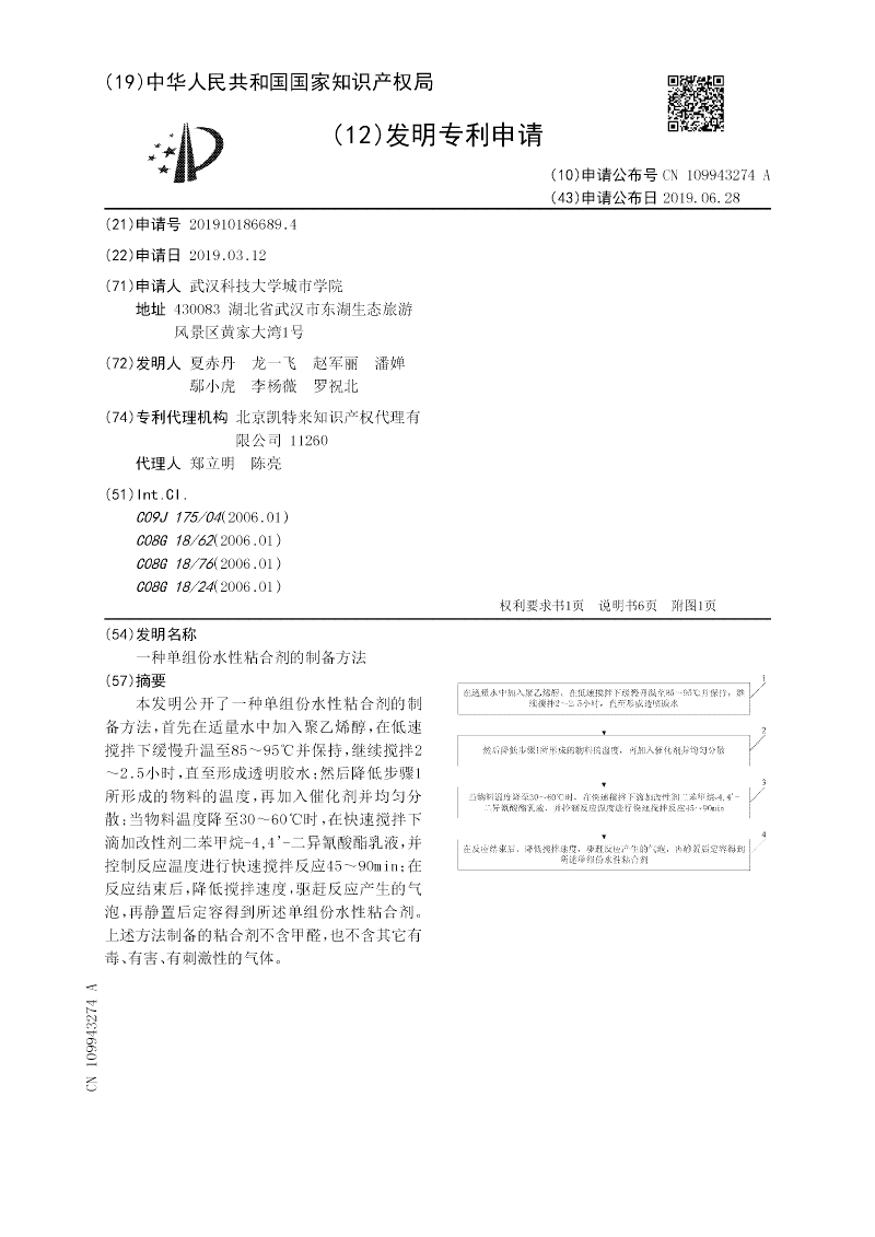 一种单组份水性粘合剂的制备方法