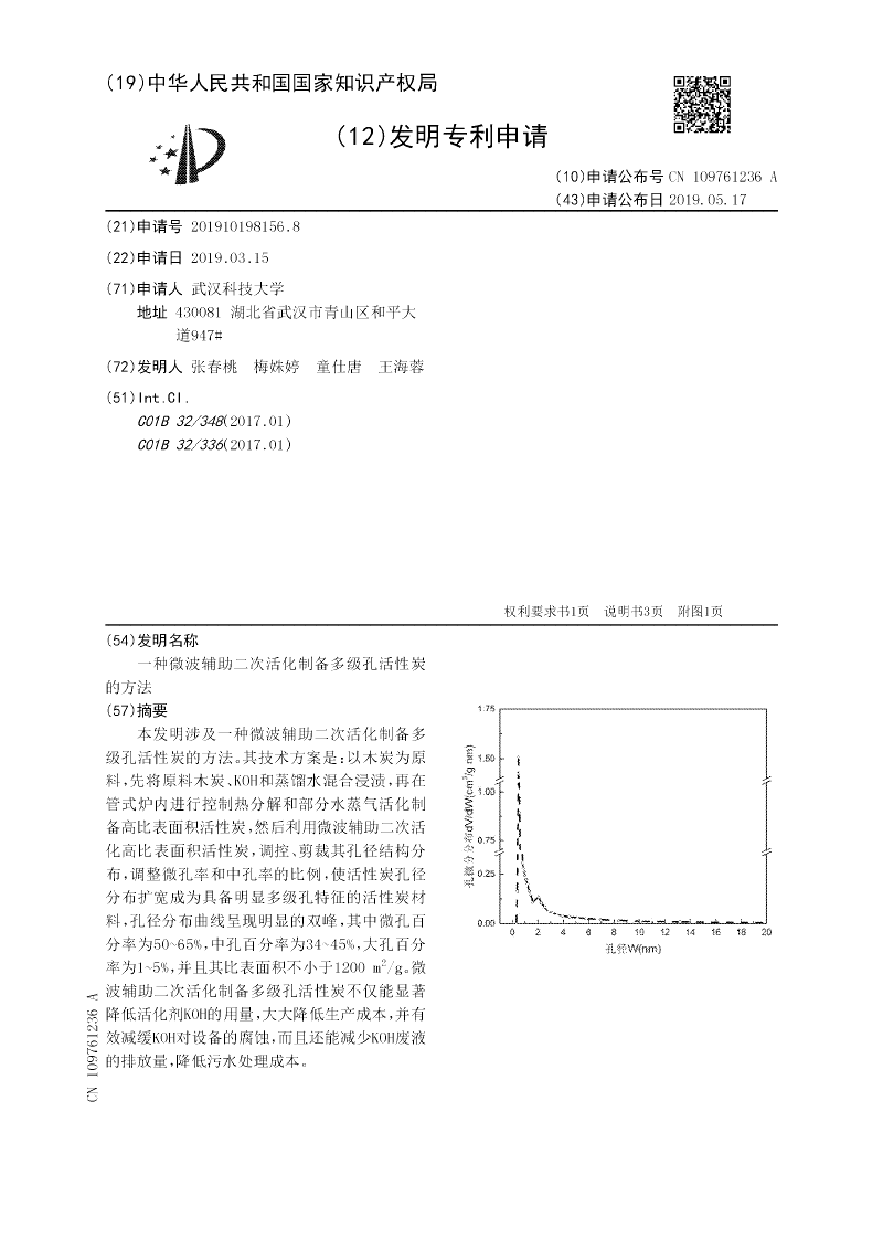 /g。微波辅助二次活化制备多级孔活性炭不仅能显著降低活化剂KOH的用量,大大降低生产成本,并有效减缓KOH对设备的腐蚀,而且还能减少KOH废液的排放量,降低污水处理成本。