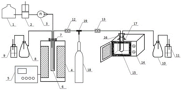 保护气氛系统、尾气吸收处理系统和微波辅助二次活化系统,本实用新型可在活性炭制备过程中实现硝酸氧化和微波辅助二次活化的耦合技术,调整微孔率和中孔率的比例,使活性炭孔径分布扩宽成为多级孔活性炭孔径分布。