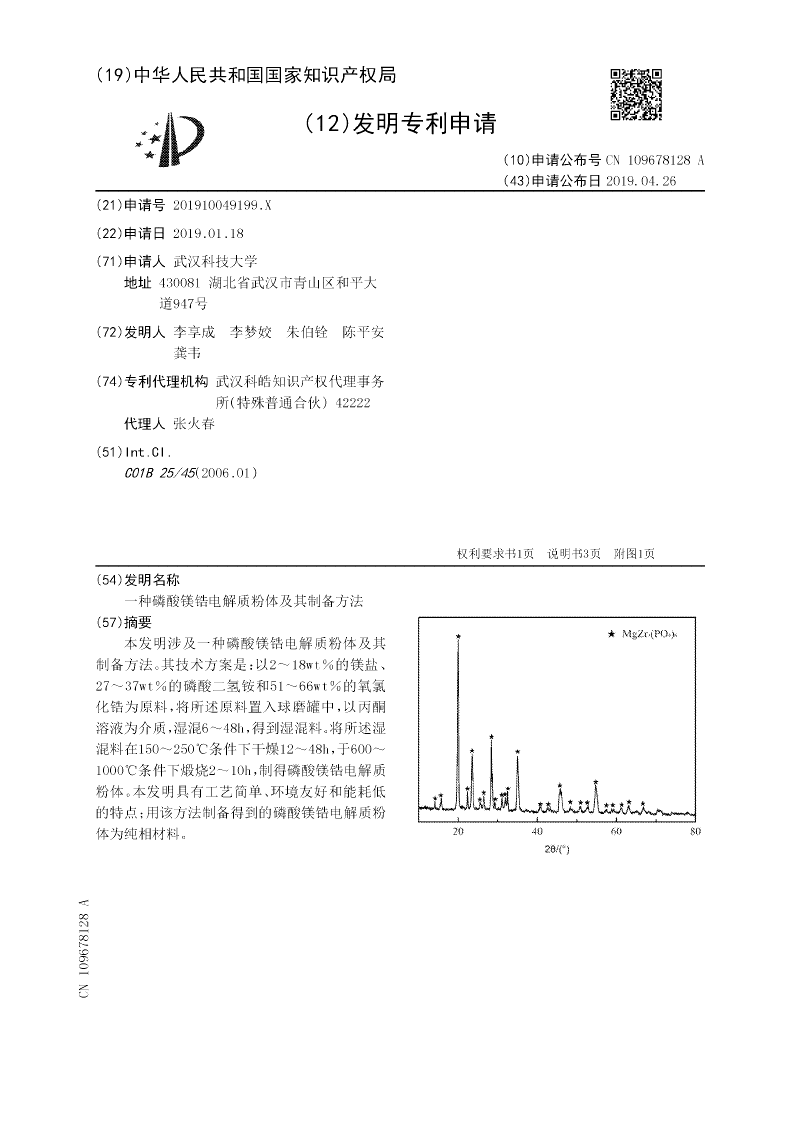 一种磷酸镁锆电解质粉体及其制备方法