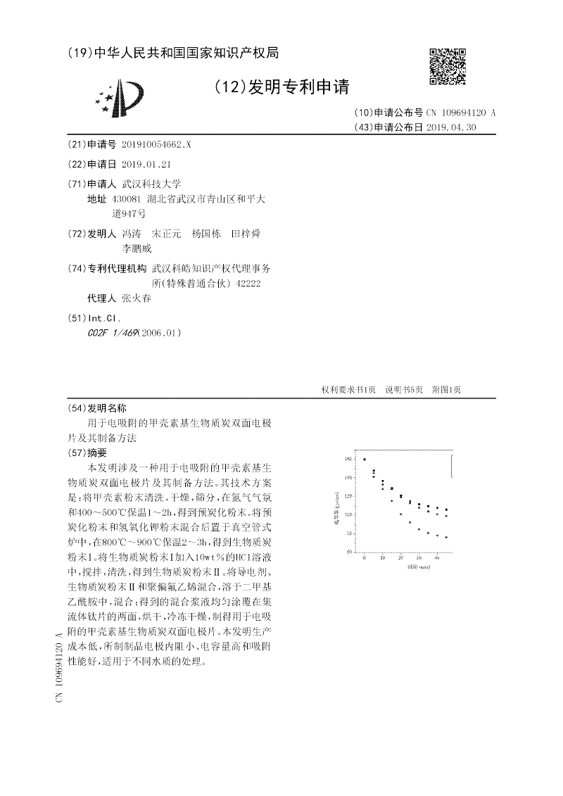 用于电吸附的甲壳素基生物质炭双面电极片及其制备方法
