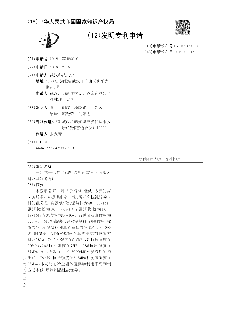 武汉科技大学、武汉江力新建材设计咨询有限公司、桂林理工大学