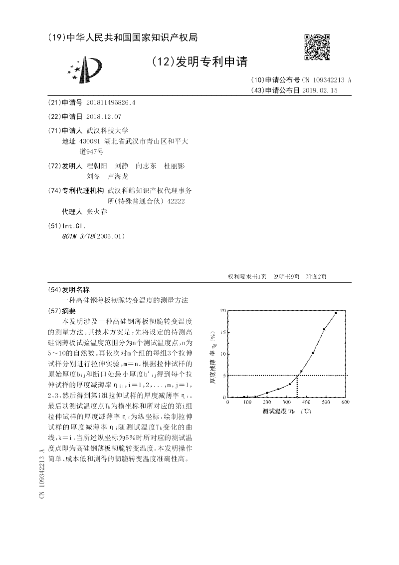 变化的曲线,k=i,当所述纵坐标为5%时所对应的测试温度点即为高硅钢薄板韧脆转变温度。本发明操作简单、成本低和测得的韧脆转变温度准确性高。