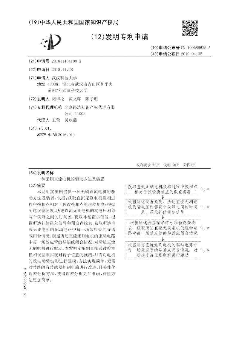 本发明实施例提供一种无刷直流电机的驱动方法及装置,包括:获取直流无刷电机换相过程中换相点相对于预设换相点的误差角度;根据所述误差角度、所述直流无刷电机的端电压相邻两个尖峰之间的时间差,获取补偿霍尔信号;根据所述补偿霍尔信号和预设查找表,获取所述直流无刷电机的驱动电路中每一场效应管的导通或闭合情况;根据所述直流无刷电机的驱动电路中每一场效应管的导通或闭合情况,对所述直流无刷电机进行驱动。本发明实施例直接通过检测换相误差来实现对转子位置的预测,只需对电机的反电动势波形进行建模。方法实现简单,无需对传统的有传感器控制电路进行改进。且整体化误差分析方法,使得误差分析更加准确,补偿方法更加简单。
