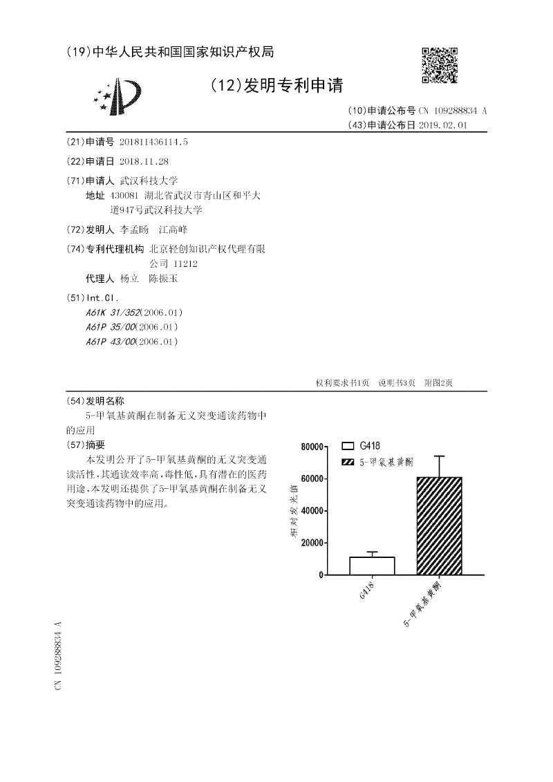 本发明公开了5‑甲氧基黄酮的无义突变通读活性,其通读效率高,毒性低,具有潜在的医药用途,本发明还提供了5‑甲氧基黄酮在制备无义突变通读药物中的应用。