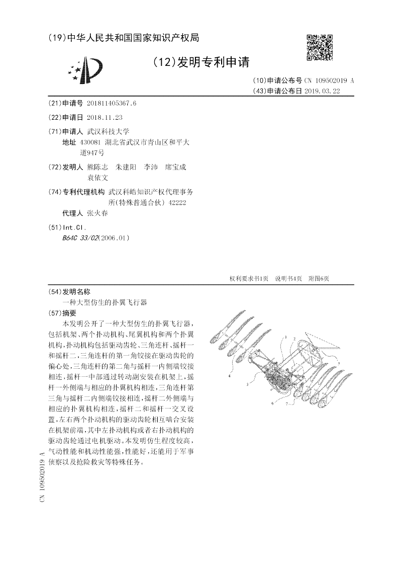 一种大型仿生的扑翼飞行器