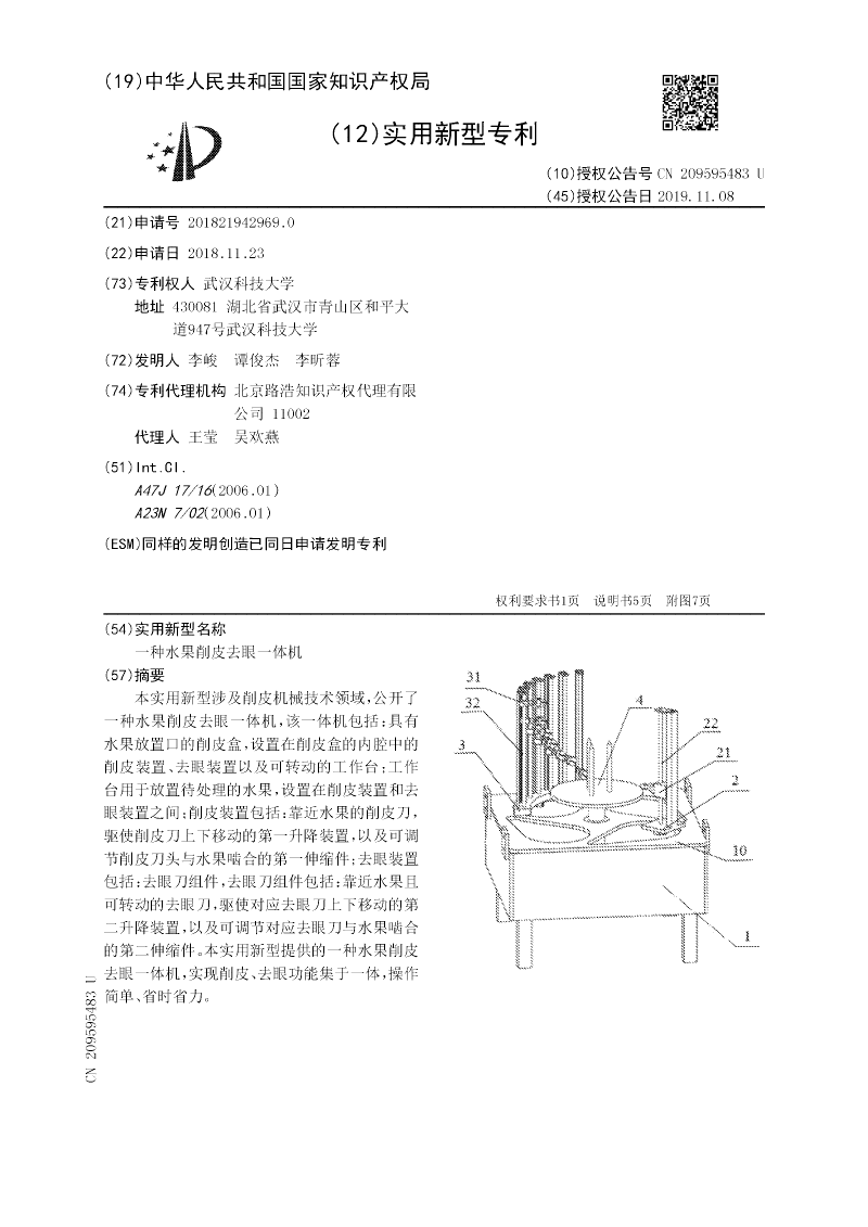 一种水果削皮去眼一体机