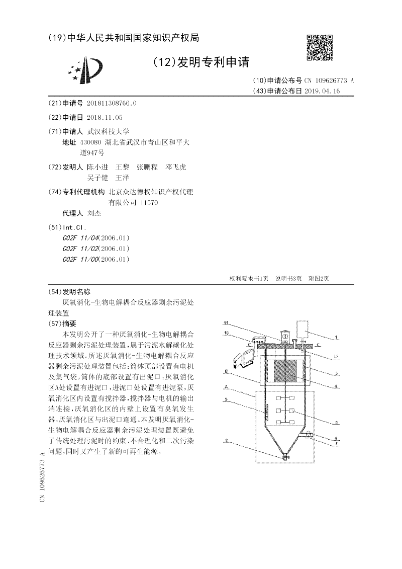 厌氧消化-生物电解耦合反应器剩余污泥处理装置
