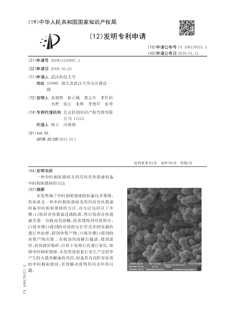 一种中间相炭微球及利用沥青热裂油制备中间相炭微球的方法