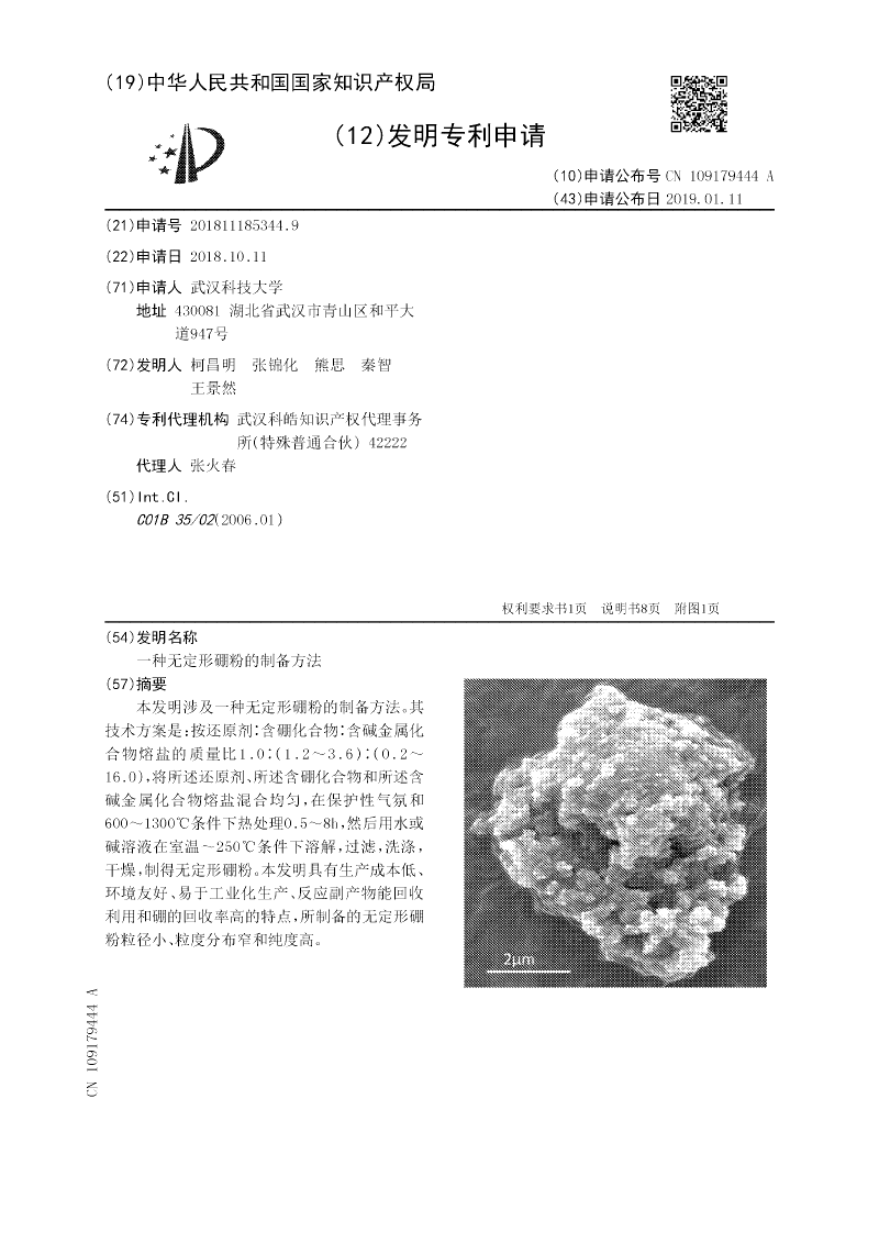 粉中一种以上;硼源为硼矸、硼酸、四硼酸钠、四硼酸钾、四硼酸锂中一种以上;含碱金属化合物熔盐为氢氧化钠、硅酸钠、碳酸钠、氢氧化钾、硅酸钾、碳酸钾、氢氧化锂、硅酸锂、碳酸锂、铝酸钠中一种以上。本发明成本低、环境友好和易于工业化生产,所制制品粒度小和粒度分布窄。