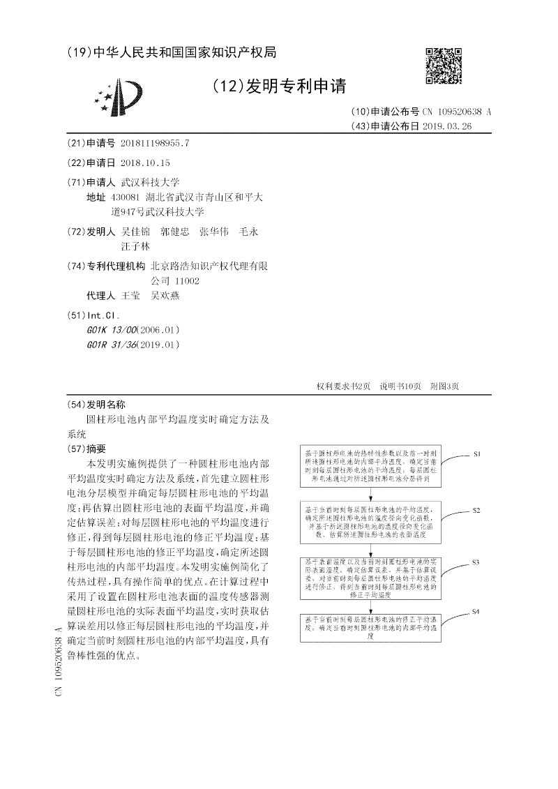 本发明实施例提供了一种圆柱形电池内部平均温度实时确定方法及系统,首先建立圆柱形电池分层模型并确定每层圆柱形电池的平均温度;再估算出圆柱形电池的表面平均温度,并确定估算误差;对每层圆柱形电池的平均温度进行修正,得到每层圆柱形电池的修正平均温度;基于每层圆柱形电池的修正平均温度,确定所述圆柱形电池的内部平均温度。本发明实施例简化了传热过程,具有操作简单的优点。在计算过程中采用了设置在圆柱形电池表面的温度传感器测量圆柱形电池的实际表面平均温度,实时获取估算误差用以修正每层圆柱形电池的平均温度,并确定当前时刻圆柱形电池的内部平均温度,具有鲁棒性强的优点。