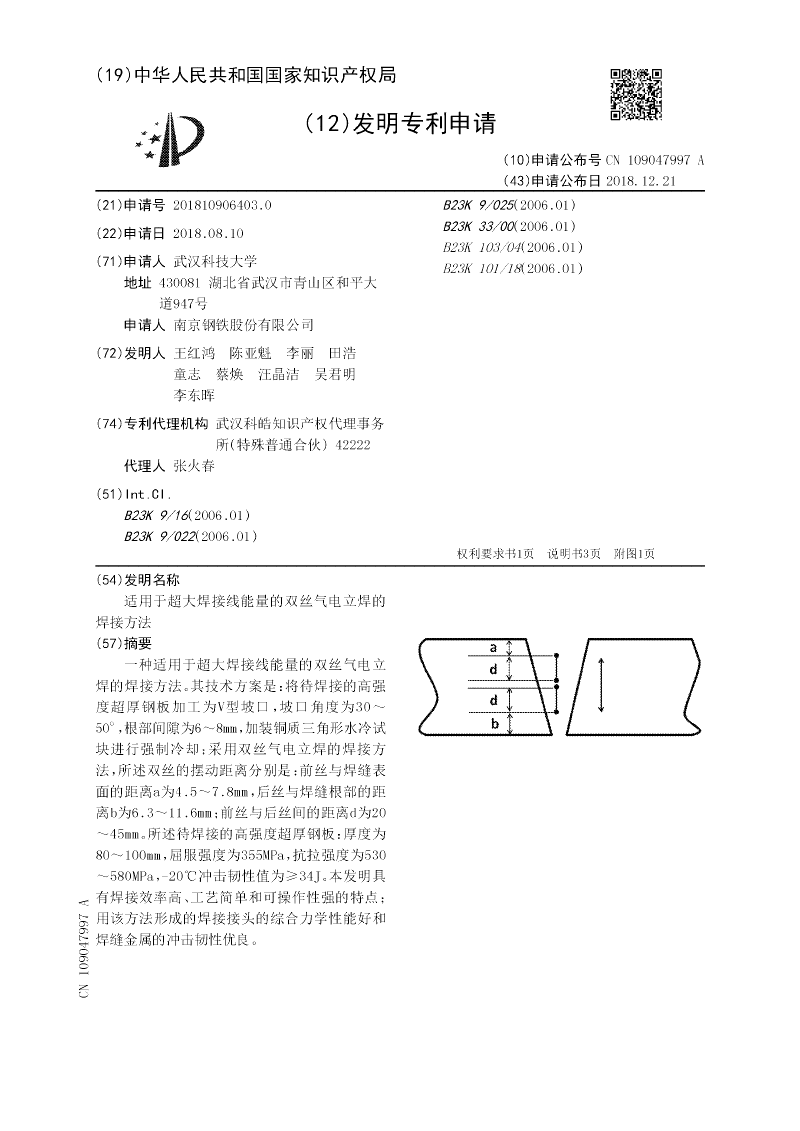 适用于超大焊接线能量的双丝气电立焊的焊接方法