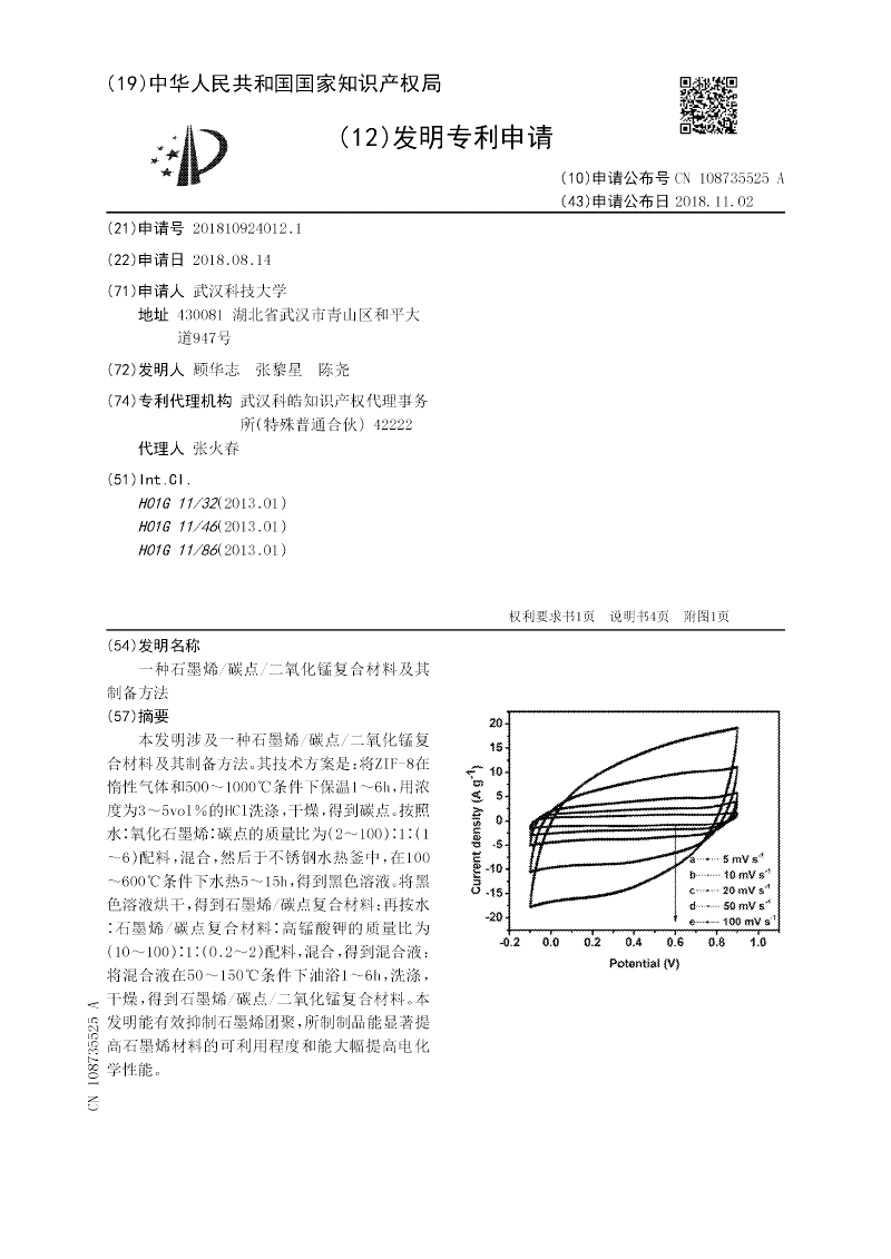 一种石墨烯/碳点/二氧化锰复合材料及其制备方法