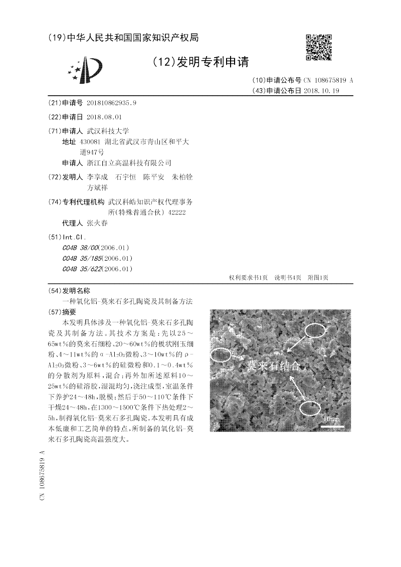 一种氧化铝-莫来石多孔陶瓷及其制备方法
