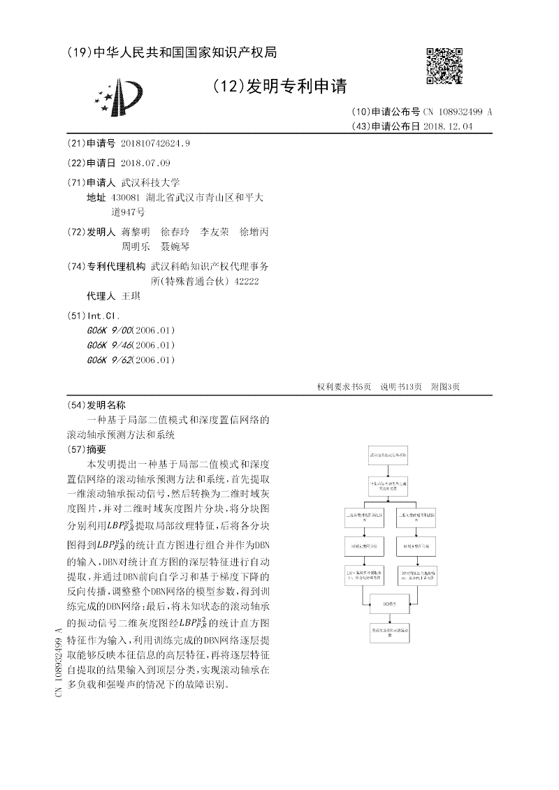 一种基于局部二值模式和深度置信网络的滚动轴承预测方法和系统