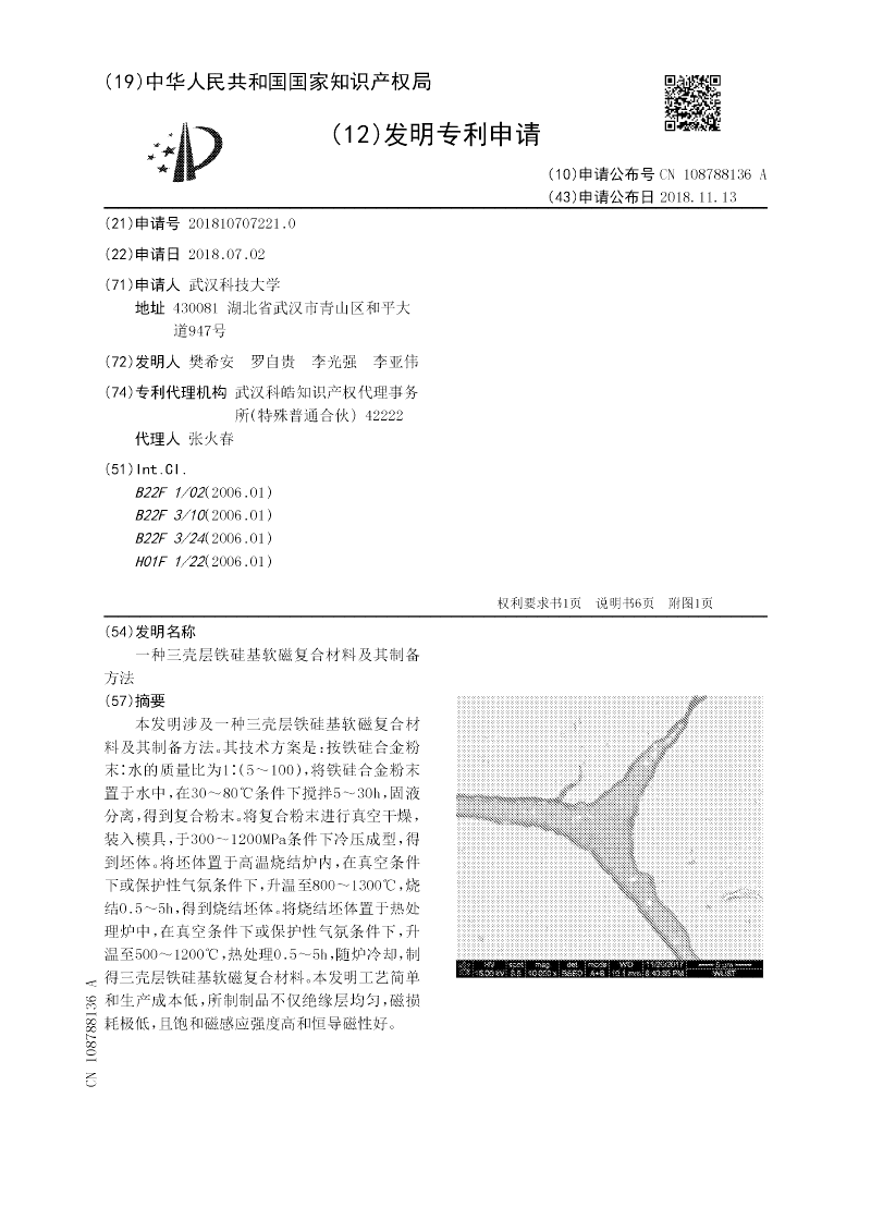 一种三壳层铁硅基软磁复合材料及其制备方法
