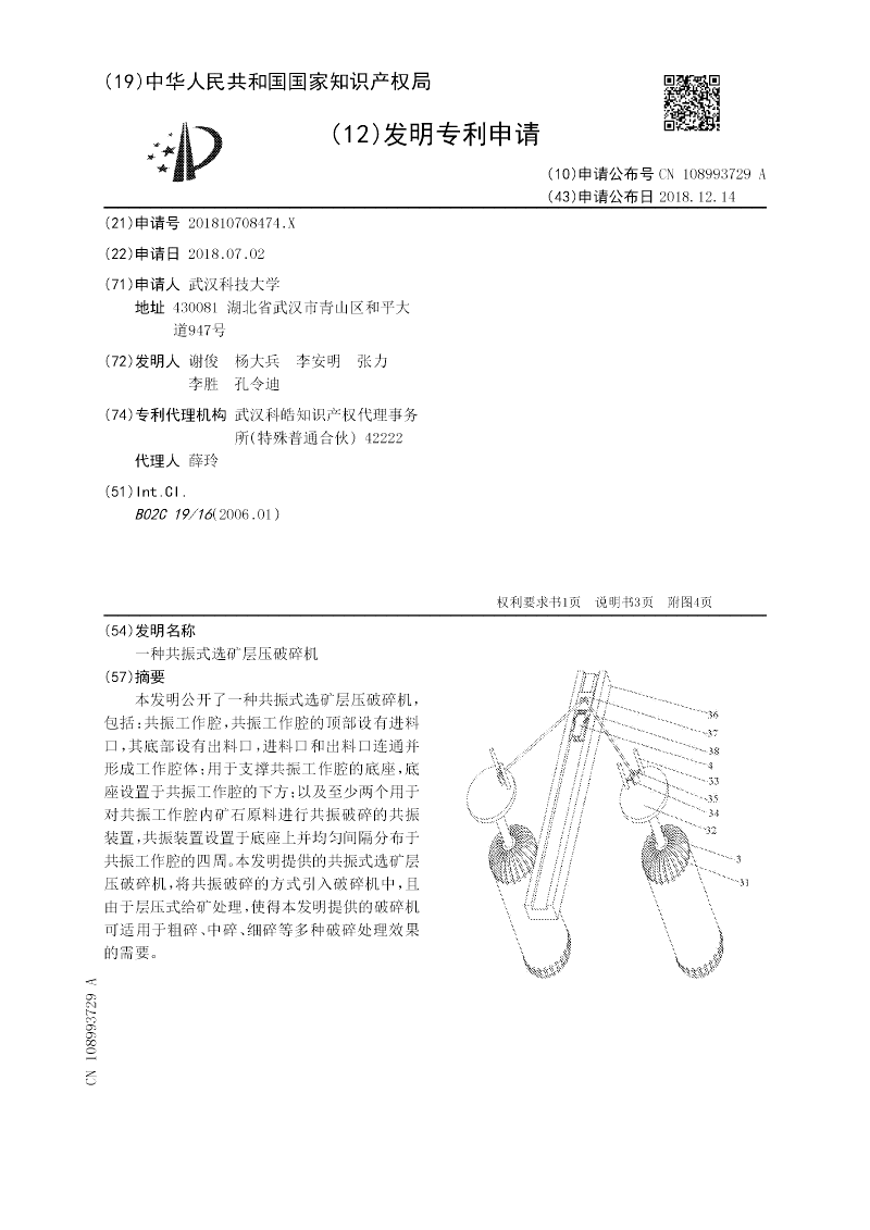 一种共振式选矿层压破碎机