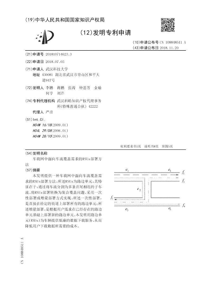 车载网中面向车流覆盖需求的RSUs部署方法