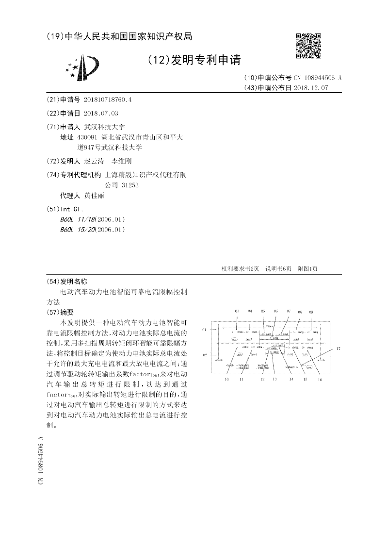 电动汽车动力电池智能可靠电流限幅控制方法