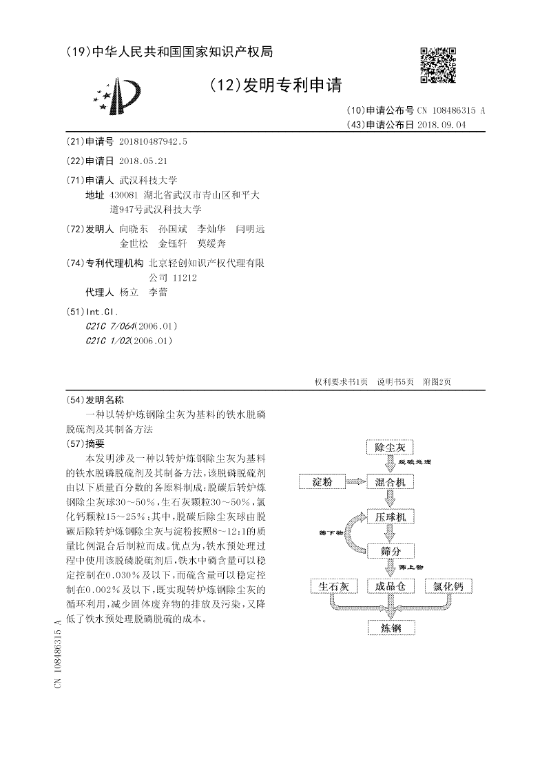 一种以转炉炼钢除尘灰为基料的铁水脱磷脱硫剂及其制备方法