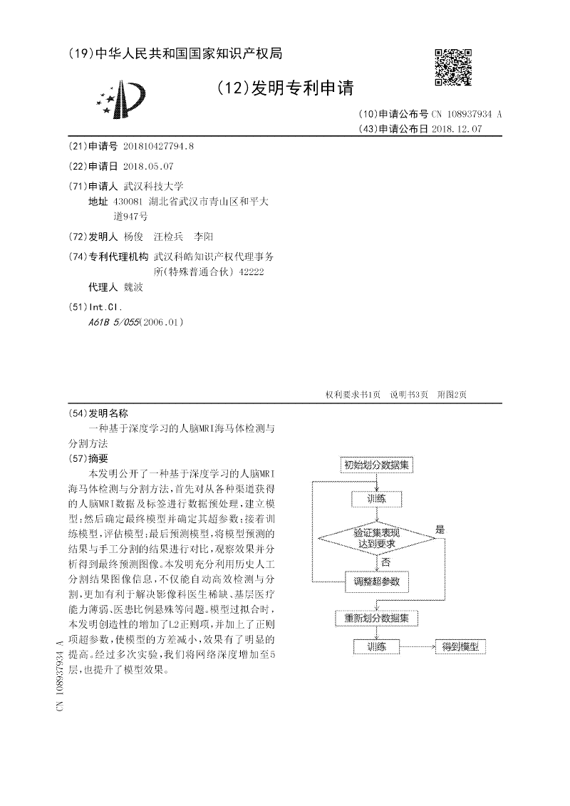 一种基于深度学习的人脑MRI海马体检测与分割方法
