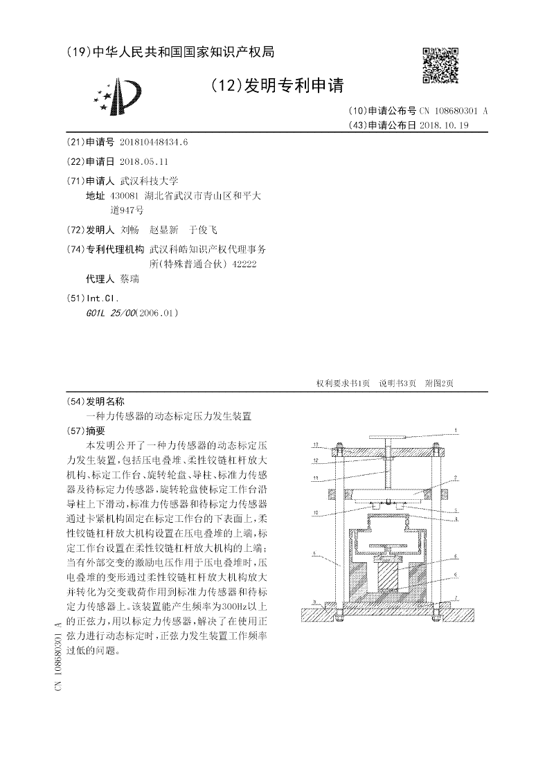 一种力传感器的动态标定压力发生装置