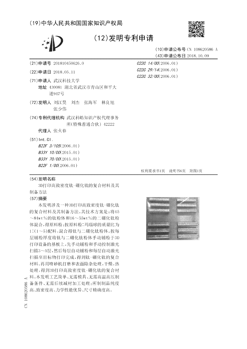 3D打印高致密度钛-硼化钛的复合材料及其制备方法