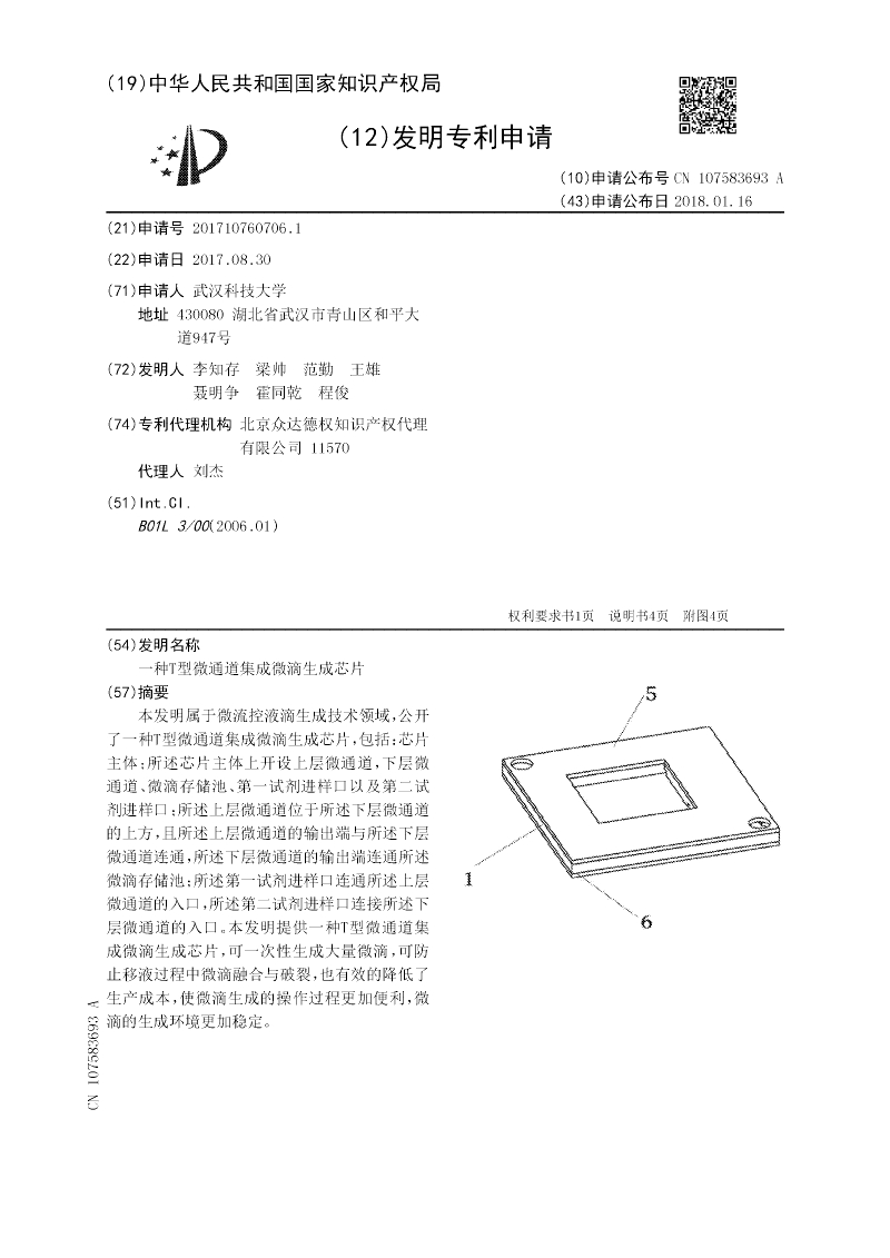 一种T型微通道集成微滴生成芯片