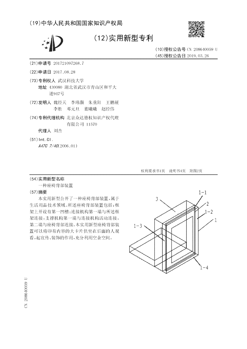 一种座椅背部装置