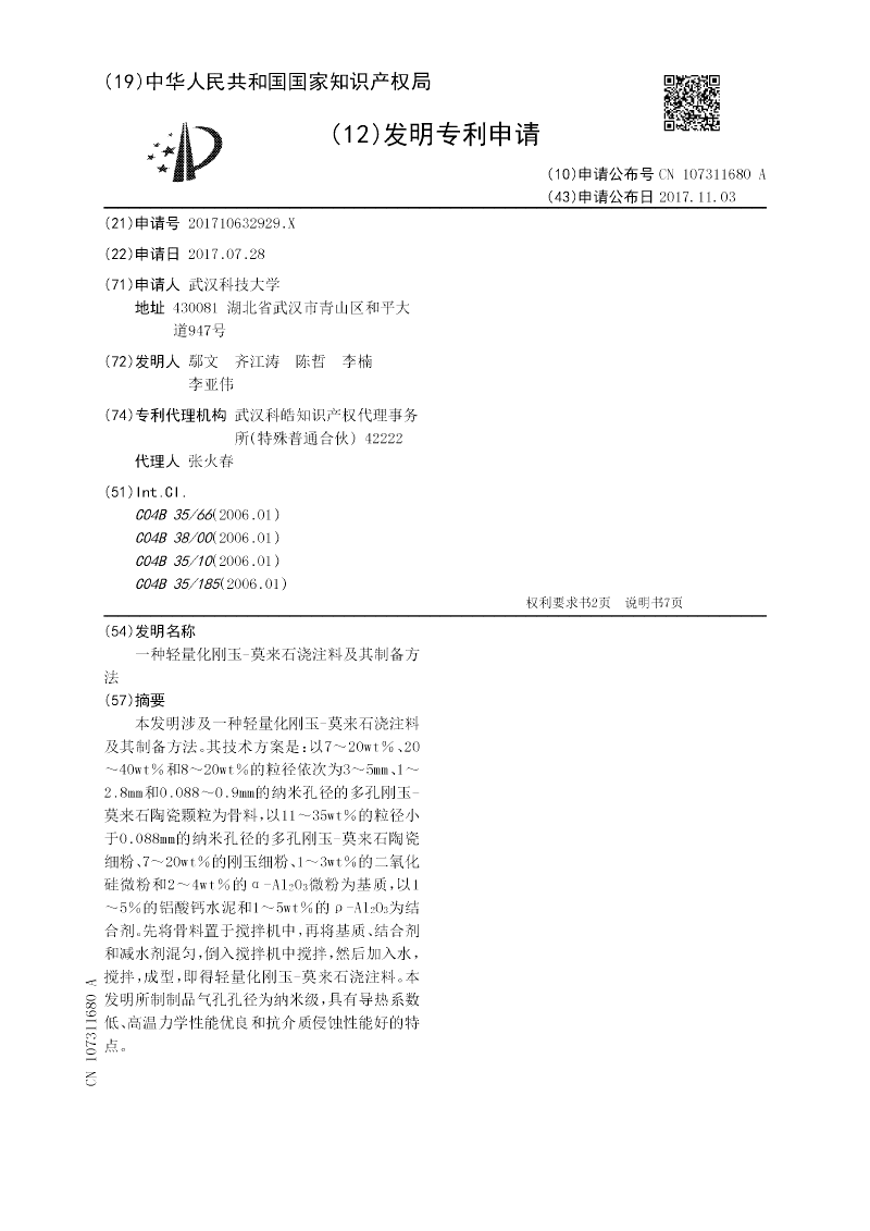 一种轻量化刚玉‑莫来石浇注料及其制备方法