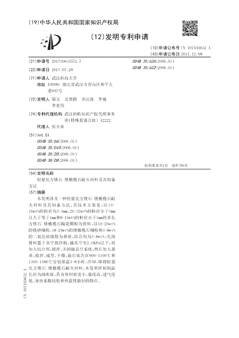 轻量化方镁石‑镁橄榄石耐火材料及其制备方法