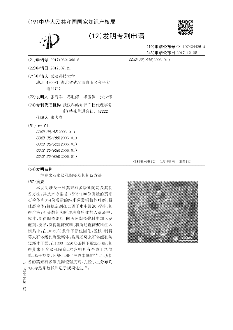 一种莫来石多级孔陶瓷及其制备方法