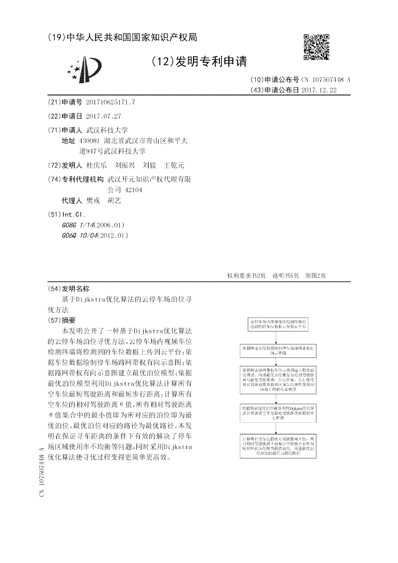 基于Dijkstra优化算法的云停车场泊位寻优方法
