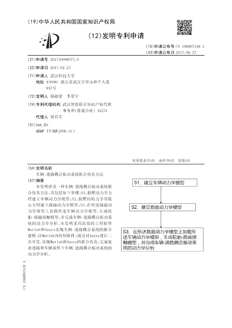 本发明涉及一种车辆‑道路耦合振动系统联合仿真方法,其包括如下步骤:S1、按照动力学方程建立车辆动力学模型;S2、按照结构力学有限元方程建立路面动力学模型;S3、在所述路面动力学模型上加载所述车辆动力学模型,生成轮胎‑路面接触模型,并完成车辆‑道路耦合振动系统的动力学分析。本发明采用高效的工程软件Matlab和Ansys实现车辆‑道路耦合系统的联合建模,以Matlab为控制软件,通过对Ansys进行二次开发,实现Matlab和Ansys的联合仿真,完成复杂道路和车辆条件下车辆‑道路耦合振动系统的动力学分析。