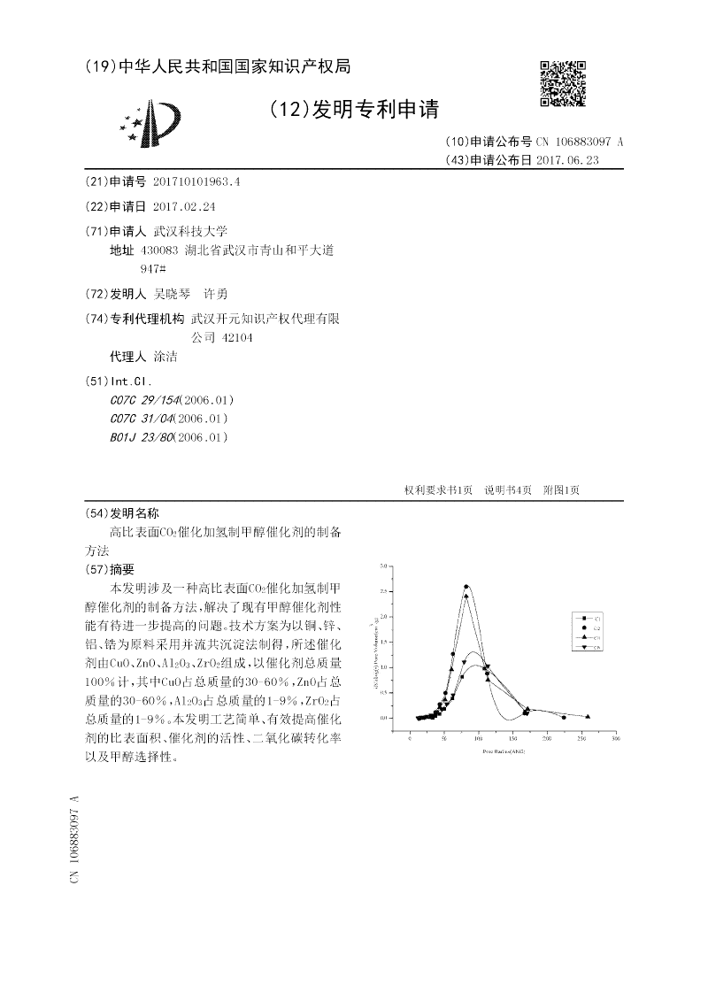 高比表面CO2催化加氢制甲醇催化剂的制备方法