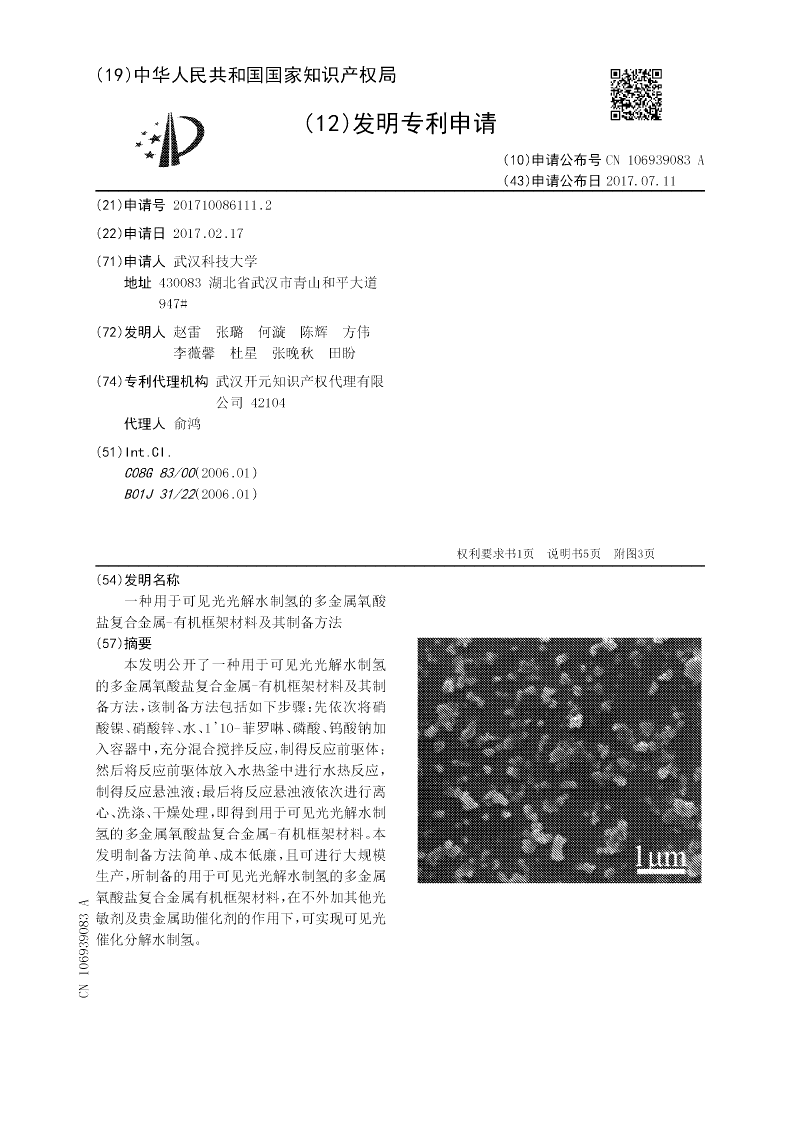 一种用于可见光光解水制氢的多金属氧酸盐复合金属‑有机框架材料及其制备方法
