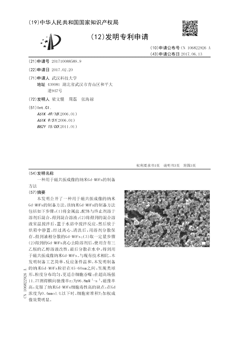 一种用于磁共振成像的纳米Gd‑MOFs的制备方法